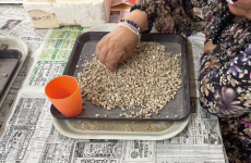 ハウスで使用する用土の不純物撤去作業です 手作業で行うため質の高い用土で栽培が可能です